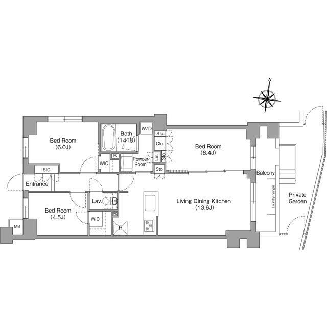 3LDK(LDK13.6 洋6.4 洋6 洋4.5) |