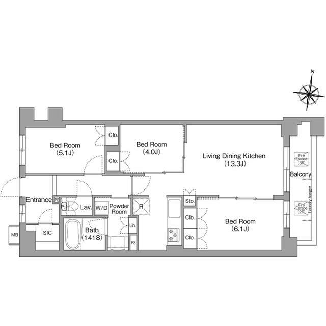 3LDK(LDK13.3 洋6.1 洋5.1 洋4) |