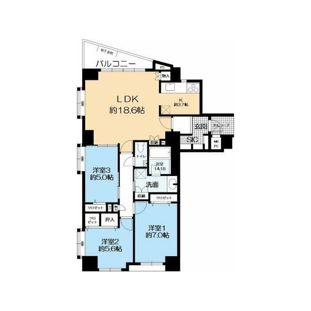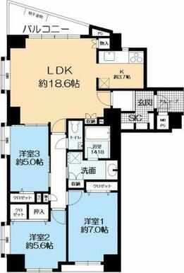 3LDK(LDK18.6、洋7、洋5.6、洋5) |